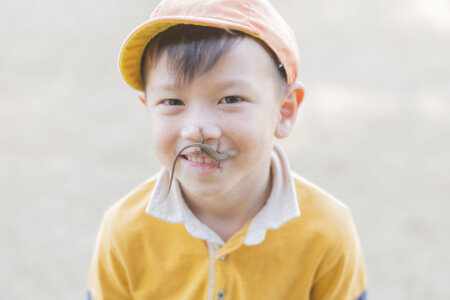子どもたちは小さな生き物が大好きです。カエルやバッタ、カニなどたくさんの生き物と触れ合って遊びます。